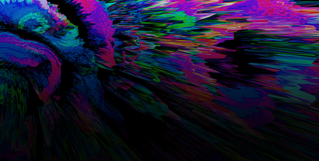 Un MacBook Pro con lo schermo leggermente aperto che emana una luce soffusa e multicolore, illuminando la tastiera