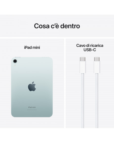 - 8.3" LIQUID RETINA DISPLAY[1] - The stunning Liquid Retina display has advanced technologies such as True Tone and a wide P3 color gamut, as well as minimized reflectance, so it gives you absolutely spectacular images. - PERFORMANCE AND STORAGE SPACE - The A17 Pro chip is a powerhouse, giving you ultra-fast graphics performance for games. And thanks to an all-day battery life,[4] iPad mini is always ready to follow you in everything you do. With storage starting at 128GB: plenty of space for apps, music, movies, and anything else you want.[5] - IPADOS + APP - iPadOS makes your iPad more efficient, intuitive and versatile. With iPadOS you can use multiple apps at once, handwrite in text fields with Apple Pencil, and retouch and share photos. So many must-have apps, such as Safari, Messages, and Keynote, already come standard on iPad mini, and you'll find more than a million in the App Store. - APPLE PENCIL AND SMART FOLIO - Apple Pencil Pro turns your iPad mini into a canvas with everything you need to paint, or into the most practical of notebooks. Apple Pencil (USB C) is also compatible with iPad mini. And the Smart Folio cover, slim and available in four colors, protects your iPad mini and is also perfect as a stand. Accessories sold separately. - EVOLUTIONAL CAMERAS - iPad mini has a 12MP front camera with ultra-wide angle and Auto Frame for selfies and videocalls. The 12MP rear camera with wide angle and True Tone flash is perfect for scanning documents, taking photos and shooting 4K video. - UNLOCK AND PAY WITH TOUCH ID - Touch ID is built into the top button: one touch is all it takes to unlock the iPad mini, access apps and pay for your purchases securely with Apple Pay. - CONNECTIVITY - With Wi-Fi 6E you can count on superfast wireless connections[3] to work almost anywhere and transfer large photos, documents and videos in a snap. And the USB-C connector offers super-fast connections.