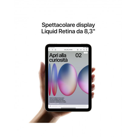 - 8.3" LIQUID RETINA DISPLAY[1] - The stunning Liquid Retina display has advanced technologies such as True Tone and a wide P3 color gamut, as well as minimized reflectance, so it gives you absolutely spectacular images. - PERFORMANCE AND STORAGE SPACE - The A17 Pro chip is a powerhouse, giving you ultra-fast graphics performance for games. And thanks to an all-day battery life,[4] iPad mini is always ready to follow you in everything you do. With storage starting at 128GB: plenty of space for apps, music, movies, and anything else you want.[5] - IPADOS + APP - iPadOS makes your iPad more efficient, intuitive and versatile. With iPadOS you can use multiple apps at once, handwrite in text fields with Apple Pencil, and retouch and share photos. So many must-have apps, such as Safari, Messages, and Keynote, already come standard on iPad mini, and you'll find more than a million in the App Store. - APPLE PENCIL AND SMART FOLIO - Apple Pencil Pro turns your iPad mini into a canvas with everything you need to paint, or into the most practical of notebooks. Apple Pencil (USB C) is also compatible with iPad mini. And the Smart Folio cover, slim and available in four colors, protects your iPad mini and is also perfect as a stand. Accessories sold separately. - EVOLUTIONAL CAMERAS - iPad mini has a 12MP front camera with ultra-wide angle and Auto Frame for selfies and videocalls. The 12MP rear camera with wide angle and True Tone flash is perfect for scanning documents, taking photos and shooting 4K video. - UNLOCK AND PAY WITH TOUCH ID - Touch ID is built into the top button: one touch is all it takes to unlock the iPad mini, access apps and pay for your purchases securely with Apple Pay. - CONNECTIVITY - With Wi-Fi 6E you can count on superfast wireless connections[3] to work almost anywhere and transfer large photos, documents and videos in a snap. And the USB-C connector offers super-fast connections.