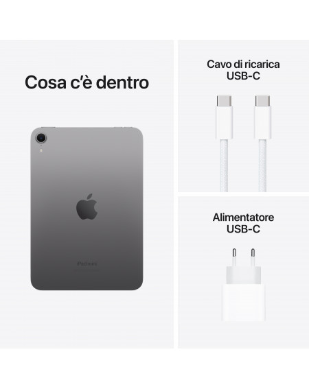 iPad mini is incredibly powerful for such a small size. It has the super-fast A17 Pro chip and an 8.3" Liquid Retina display,[1] and you can use it with Apple Pencil Pro to study, work, create, and have fun wherever you are.- 8.3" LIQUID RETINA DISPLAY[1] - The stunning Liquid Retina display has advanced technologies such as True Tone and a wide P3 color gamut, as well as minimized reflectance, so it gives you absolutely spectacular images. - PERFORMANCE AND STORAGE SPACE - The A17 Pro chip is a powerhouse and gives you ultra-fast graphics performance for games. And with an all-day battery life,[4] iPad mini is always ready to follow you in everything you do. With storage starting at 128GB: plenty of space for apps, music, movies, and everything else you want.[5] - IPADOS + APP - iPadOS makes your iPad more efficient, intuitive, and versatile. With iPadOS you can use multiple apps at once, handwrite in text fields with Apple Pencil, and retouch and share photos. So many must-have apps, such as Safari, Messages and Keynote, already come standard on iPad mini, and you'll find more than a million of them in the App Store. - APPLE PENCIL AND SMART FOLIO - Apple Pencil Pro turns your iPad mini into a canvas with everything you need to paint, or into the most practical of notebooks. Apple Pencil (USB C) is also compatible with iPad mini. And the Smart Folio cover, slim and available in four colors, protects your iPad mini and is also perfect as a stand. Accessories sold separately. - EVOLUTIONAL CAMERAS - iPad mini has a 12MP front-facing camera with ultra-wide-angle and Auto Frame for selfies and videocalls. The 12MP rear camera with wide-angle lens and True Tone flash is perfect for scanning documents, taking photos and shooting 4K video. - UNLOCK AND PAY WITH TOUCH ID - Touch ID is built into the top button: one touch is all it takes to unlock iPad mini, access apps and pay for your purchases securely with Apple Pay. - CONNECTIVITY - With Wi-Fi 6E you can count on superfast wireless connections[3] to work almost anywhere and transfer large photos, documents and videos in a snap. And the USB-C connector offers super-fast connections.