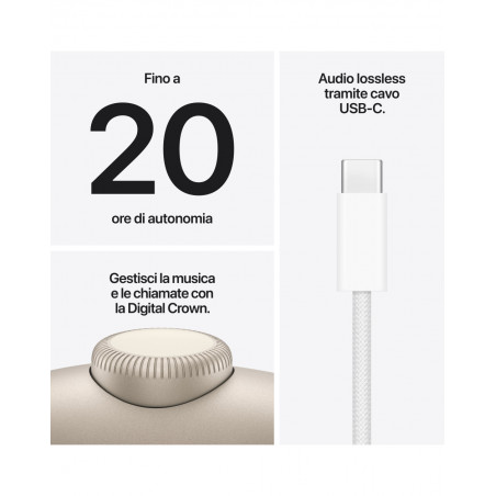 - AUDIO LOSSLESS VIA USB-C — Collega le tue AirPods Max 2 al tuo dispositivo con un cavo USB-C per goderti tutti i dettagli delle registrazioni originali. E puoi anche caricarle con lo stesso cavo che usi per gli altri dispositivi Apple.