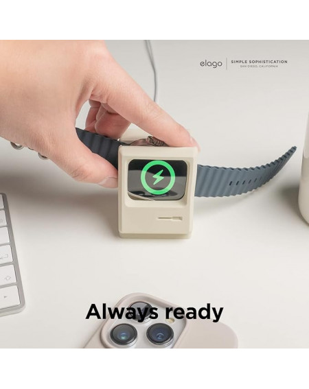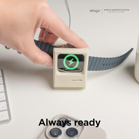 TRASFORMATE IL VOSTRO OROLOGIO in un computer retrò! Dopo la semplice installazione del disco di ricarica, posizionate l'orologio sul caricatore per avviare la ricarica. Lo schermo dell'orologio si TRASFORMA IN UNO SCHERMO DI COMPUTER RETRO.