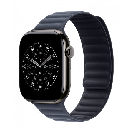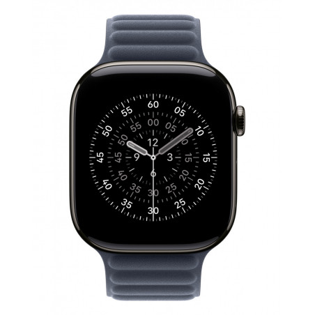 Il cinturino a maglie magnetico in FineWoven, un tessuto morbido e robusto realizzato in microtwill che ricorda la pelle scamosciata, si avvolge con eleganza e si aggancia come per magia: i magneti sagomati seguono la curva del polso per una chiusura comoda ma sempre stabile.