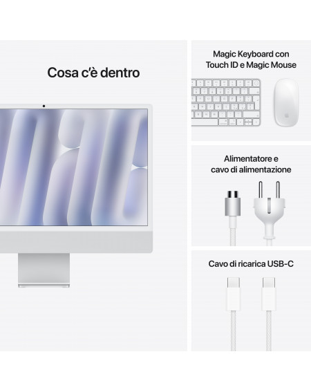 iMac 24" con Retina 4.5K display: Apple M4 chip con 10-core CPU and 10-core GPU, 16GB, 256GB SSD - Magic Keyboard con Touch ID - Argento