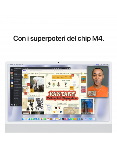 Prestazioni. Fa tutto che è una bellezza. Con il chip M4, iMac fa un salto nel futuro in termini di performance e funzioni AI. Grazie alla CPU più veloce, tutto quello che fai è ancora più immediato. La GPU evoluta sfrutta il ray tracing con accelerazione hardware per offrirti una grafica incredibilmente realistica. Il Media Engine potenziato rende semplice montare più stream video 4K. Con una memoria unificata fino a 32GB, puoi sbizzarrirti con i giochi e lavorare in multitasking su più app, sempre senza intoppi. E il nostro potente Neural Engine mette il turbo alle attività AI, come il miglioramento automatico delle foto e la rimozione dei rumori di fondo nei video.