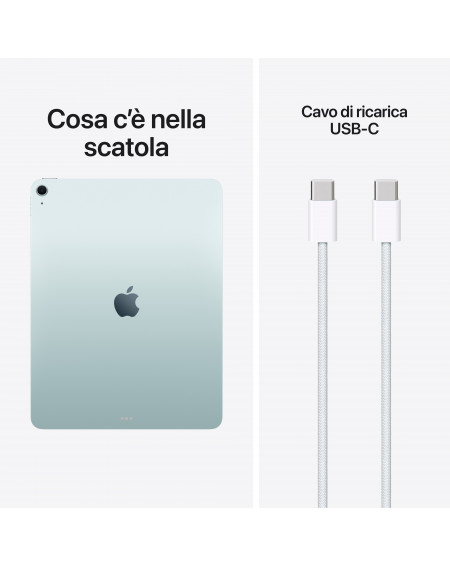 - PERCHÉ IPAD AIR – iPad Air con chip Apple M4 ti offre prestazioni ancora più scattanti e uno splendido design in due taglie superportatili. Ha le potenti funzioni di Apple Intelligence, uno spettacolare display Liquid Retina, Touch ID, fotocamere evolute e Wi Fi 7.