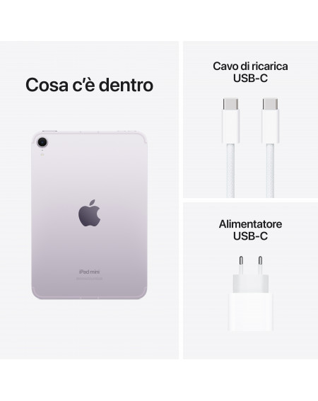 • PERFORMANCE E SPAZIO DI ARCHIVIAZIONE — Il chip A17 Pro è un concentrato di potenza e ti dà prestazioni grafiche ultraveloci per i giochi. E grazie a una batteria che dura tutto il giorno,[4] iPad mini è sempre pronto a seguirti in tutto quello che fai. Con archiviazione a partire da 128GB: spazio a volontà per app, musica, film e tutto quello che vuoi.[5]