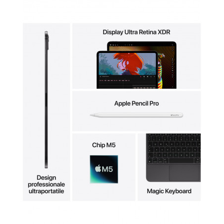 Il display Ultra Retina XDR offre un contrasto straordinario e una resa cromatica impeccabile, perfetta per l’editing di foto, video o progetti grafici. iPad Pro con M5 dà accesso a incredibili ed infinite possibilità per la creatività e la produttività e ridefinisce ancora una volta i confini di ciò che è possibile fare su iPad. iPad Pro M5 è una vera e propria workstation portatile.