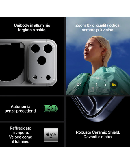 Il cuore di questo straordinario dispositivo è il chip A19 Pro, progettato per garantire prestazioni eccezionali e un’efficienza energetica mai vista prima. Tutto scorre in modo fluido, dalle app più esigenti ai giochi di ultima generazione, fino all’editing video in 4K.