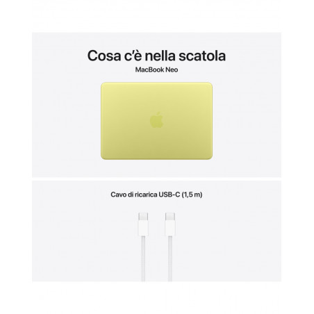 MacBook Neo 13" Apple A18 Pro chip con 6-core CPU e 5-core GPU, 8GB, 512GB SSD, Touch ID - Giallo Agrume