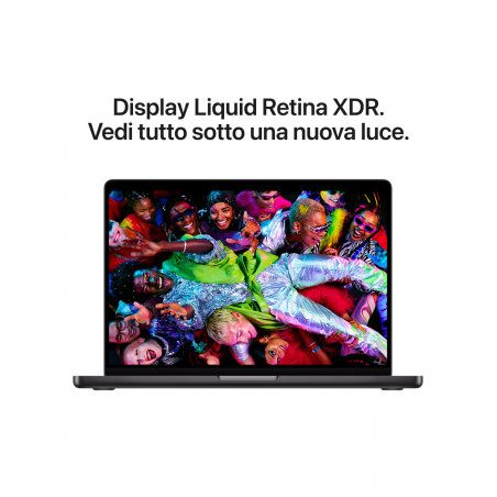 - BRILLANTE DISPLAY PRO – Il display Liquid Retina XDR da 14,2" ha 1600 nit di luminosità di picco, fino a 1000 nit di luminosità costante e un contrasto di 1.000.000:1.