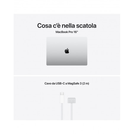 - BRILLANTE DISPLAY PRO — Il display Liquid Retina XDR da 16,2" ha 1600 nit di luminosità di picco, fino a 1000 nit di luminosità costante e un contrasto di 1.000.000:1.