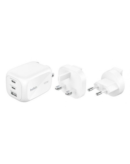 CARICABATTERIE DA PARETE DUAL 100W - 3 PORTE USB-C/USB-A - ADATTATORI DA VIAGGIO - BIANCO