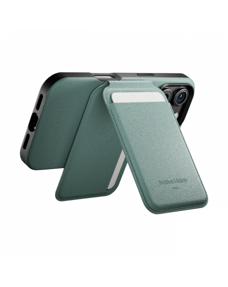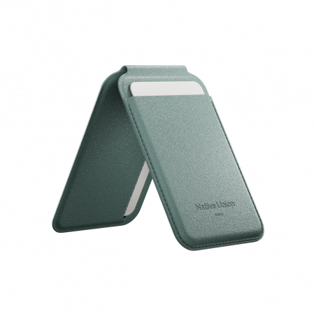 Porta un accendino dal design sottile che ospita 4 delle tue carte più essenziali Si apre in un supporto per telefono per un facile accesso a mani libere in verticale o in orizzontale ovunque tu vada Compatibile con custodie e telefoni MagSafe tramite potenti magneti integrati Realizzato con un'alternativa in pelle resistente, riciclata e priva di animali.