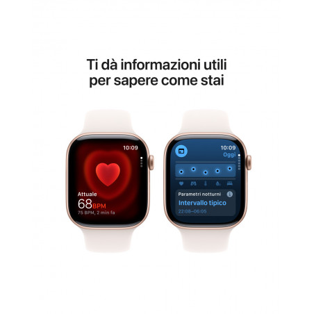 - IL TUO COMPAGNO DI FITNESS IDEALE — Parametri evoluti per tutti i tuoi allenamenti, funzioni come Ritmo definito, Zone di frequenza cardiaca e Carico di allenamento, e molto altro. In più, con Series 11 hai tre mesi gratis di Apple Fitness+.