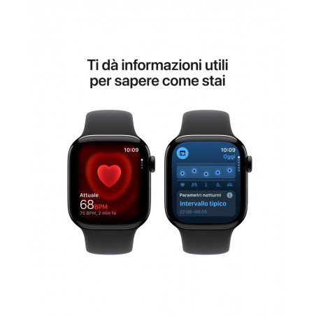 Apple Watch Series 11 ti offre informazioni preziose sulla tua salute, con notifiche in caso di frequenza cardiaca troppo alta o troppo bassa e dati sulla qualità del sonno. Migliora la tua forma fisica con parametri evoluti per tutti i tuoi allenamenti. E goditi fino a 24 ore di batteria.