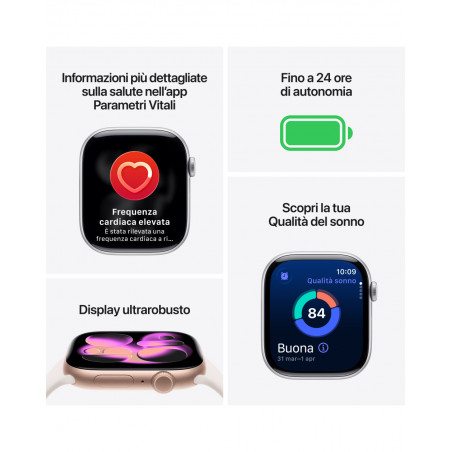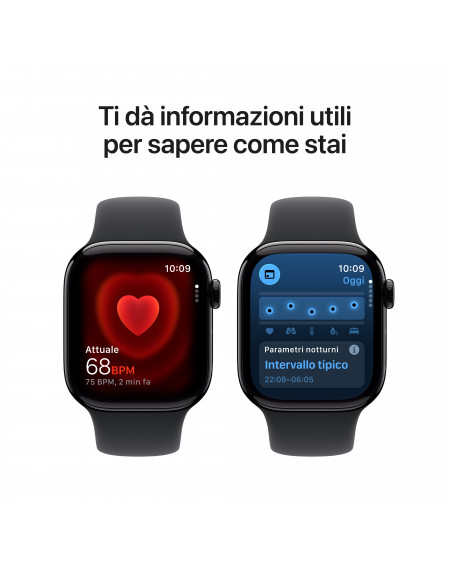 - IL TUO COMPAGNO DI FITNESS IDEALE — Parametri evoluti per tutti i tuoi allenamenti, funzioni come Ritmo definito, Zone di frequenza cardiaca e Carico di allenamento, e molto altro. In più, con Series 11 hai tre mesi gratis di Apple Fitness+.