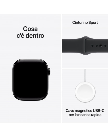Apple Watch Series 11 GPS 42mm, Cassa in Alluminio colore Jet Black con cinturino Nero Sport Band - S/M