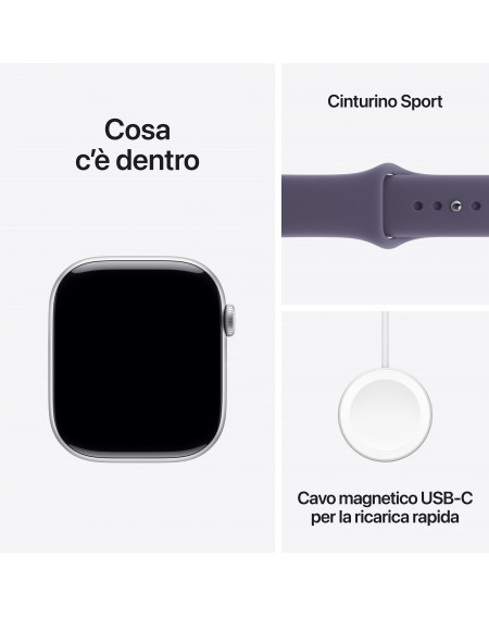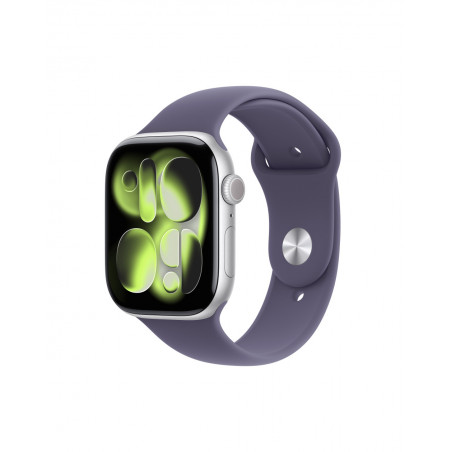 Apple Watch Series 11 GPS 46mm, Cassa in Alluminio color Argento con cinturino Viola Nebbia Sport Band - M/L