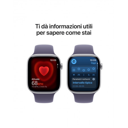 Apple Watch Series 11 ti offre informazioni preziose sulla tua salute, con notifiche in caso di frequenza cardiaca troppo alta o troppo bassa e dati sulla qualità del sonno. Migliora la tua forma fisica con parametri evoluti per tutti i tuoi allenamenti. E goditi fino a 24 ore di batteria.