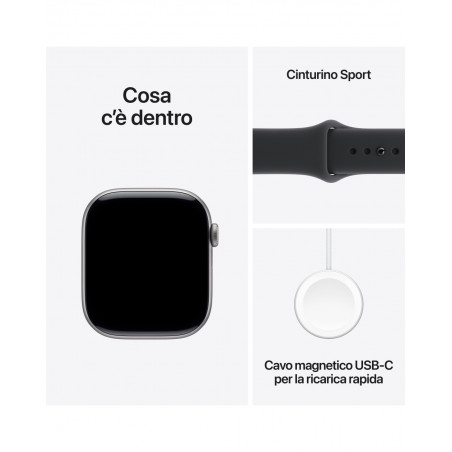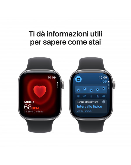 - IL TUO COMPAGNO DI FITNESS IDEALE — Parametri evoluti per tutti i tuoi allenamenti, funzioni come Ritmo definito, Zone di frequenza cardiaca e Carico di allenamento, e molto altro. In più, con Series 11 hai tre mesi gratis di Apple Fitness+.
