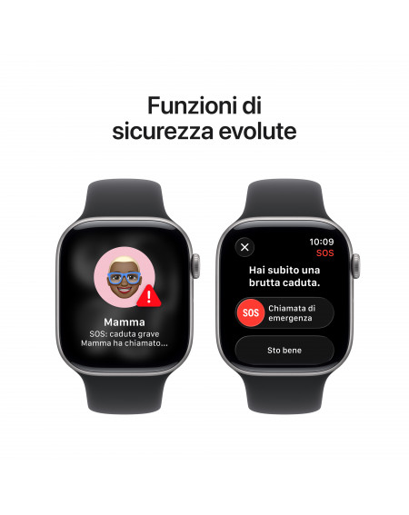- FUNZIONI PER LA SICUREZZA — Se hai avuto una brutta caduta o un grave incidente d’auto, Series 11 può accorgersene, aiutarti a chiamare i soccorsi e inviare una notifica ai tuoi contatti di emergenza. Invece, la funzione “Tutto bene”, può automaticamente avvisare una persona cara appena arrivi a destinazione.