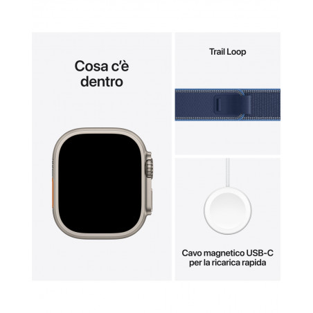 Apple Watch Ultra 3 GPS + Cellular 49mm, Cassa in Titanio Naturale con cinturino Blu acceso Trail Loop - M/L
